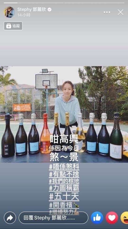 鄧麗欣ig出post開香檳慶祝 煞景 惹內地網民誤會微博急解畫 香港01 即時娛樂